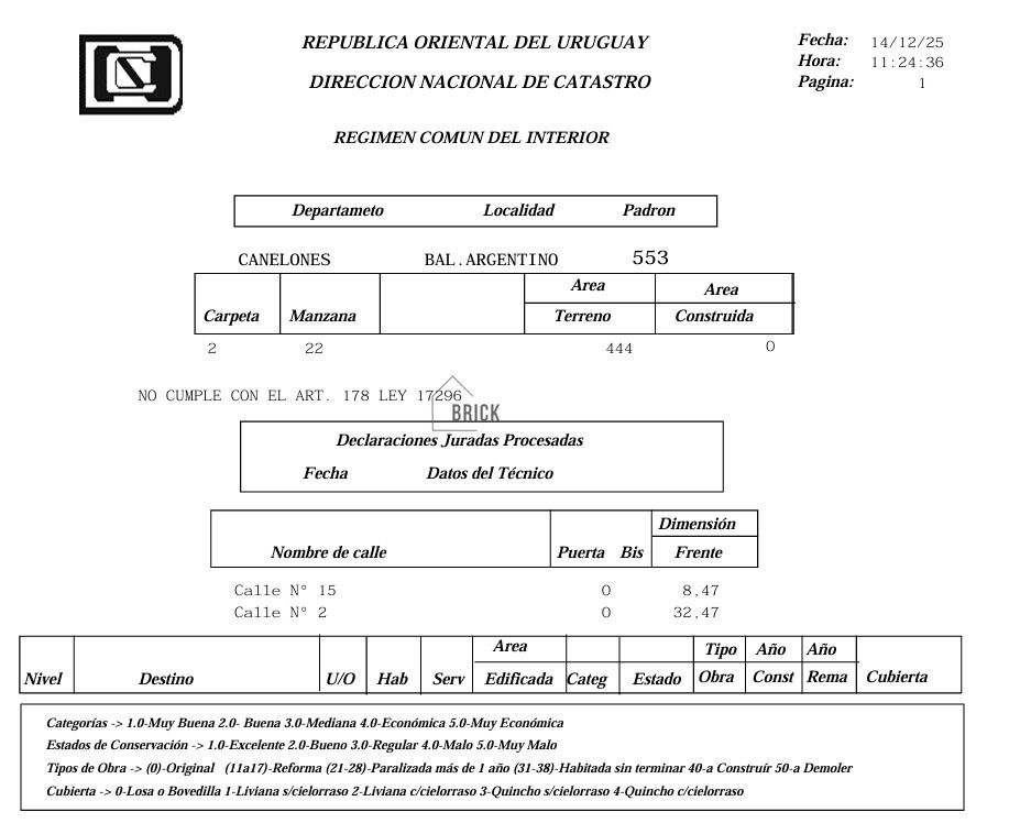 Terreno amojonado Superficie 440 metros Por Calle 15 = 8.47 mts Por calle 2 = 32.47 mt 10 cuadras del Mar